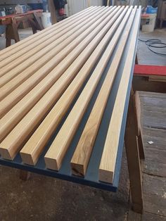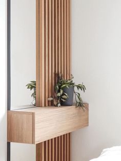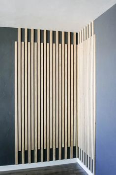 Solid wooden vertical slats pinned onto two or three horizontal mount-bars that are fastened to the wall.