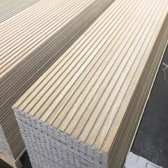 Veneer or solid wooden slats fastened to different types of substrates like engineered board or acoustic felt.