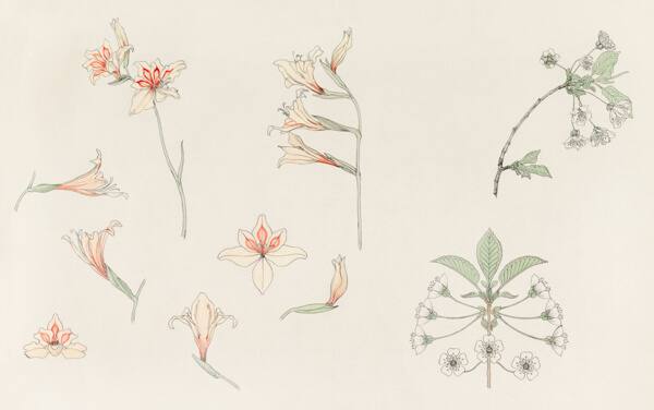 She mainly produced graphic works in an Art Nouveau style which have been described as being both “sober yet refined”. In this vintage illustration collection, you will find public domain images ranging from realistic drawings to downright artistically styled graphics, graphite, and fully colored sketches